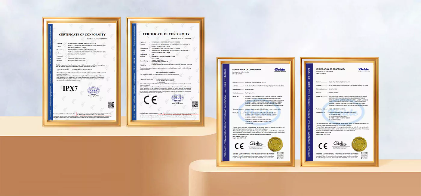 Onze wasmachines en luchtkoelers voldoen aan de EU-testnormen en zijn CE-gecertificeerd. De batterij heeft een IPX7-waterdichtheidsclassificatie. We zijn ook gecertificeerd als een uitstekende verkoper op binnenlandse e-commerceplatforms en Alibaba.